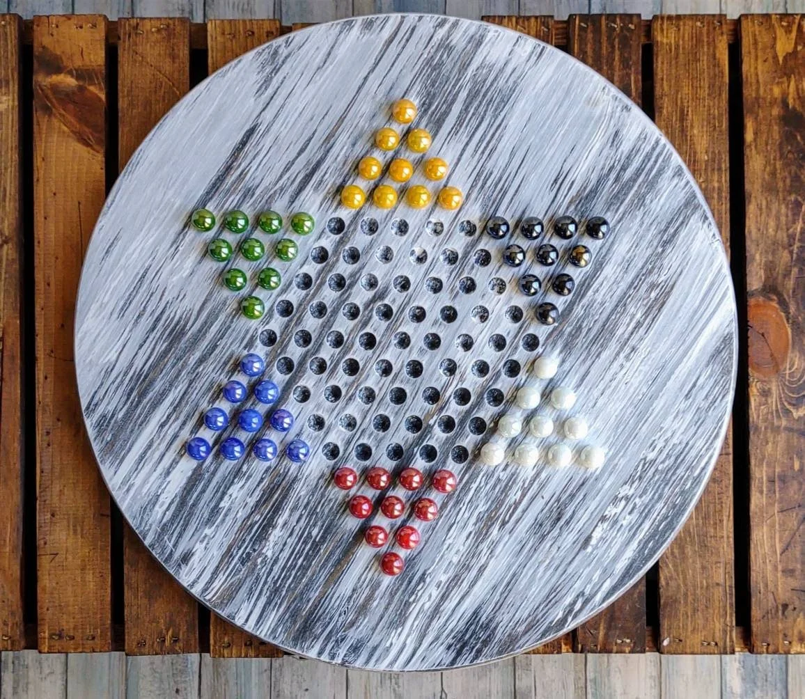 Chinese Checkers AND 4 player Wahoo game board, rustic farmhouse style 2 in one game board, double side wahoo/Chinese Checkers